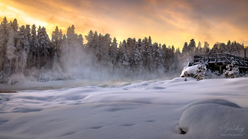 Nestled in the heart of Sweden, Storforsen is a breathtaking natural wonder that captivates visitors with its awe-inspiring beauty and powerful energy. Known as one of Europe's largest unregulated rapids, Storforsen roars with an intensity that echoes through the surrounding forest, especially during the spring thaw. However, the winter transformation of this iconic landmark unveils a completely different side—one of serene yet fierce beauty. The frozen cascades, adorned with thick layers of snow and ice, create an ethereal canvas for nature enthusiasts and photographers alike. My landscape photography captures these moments when the golden winter light pierces the frosty air, casting an enchanting glow on the rising steam from the rushing water.